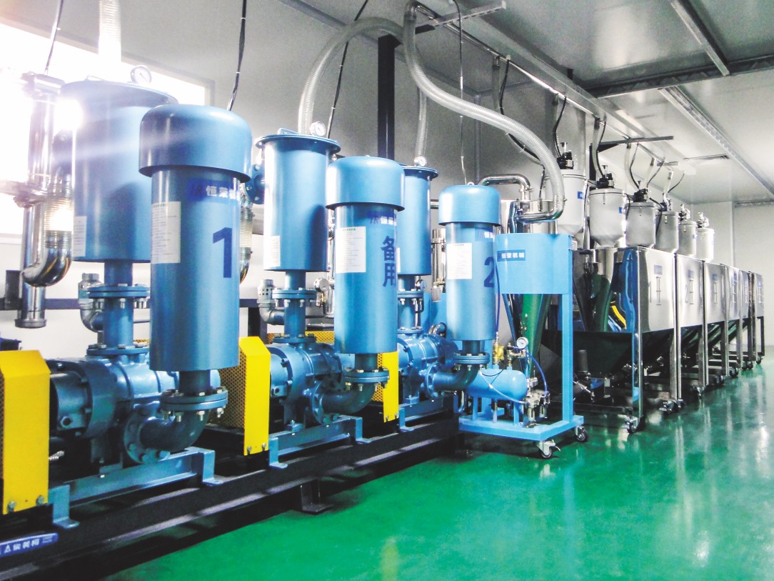 目前,生產(chǎn)干燥空氣最為普遍的方法就是利用干燥氣體發(fā)生器。該自動上料系統(tǒng)以由兩個分子篩組成的吸附性干燥器為核心,空氣中的水分在這里被吸收。在干燥狀態(tài)下,空氣流經(jīng)分子篩,分子篩吸收氣體中的水分,為干燥提供除濕氣體。在再生狀態(tài)下,分子篩被熱空氣加熱至再生溫度,流經(jīng)分子篩的氣體收集被除去的水分,并將其帶至周圍環(huán)境中。